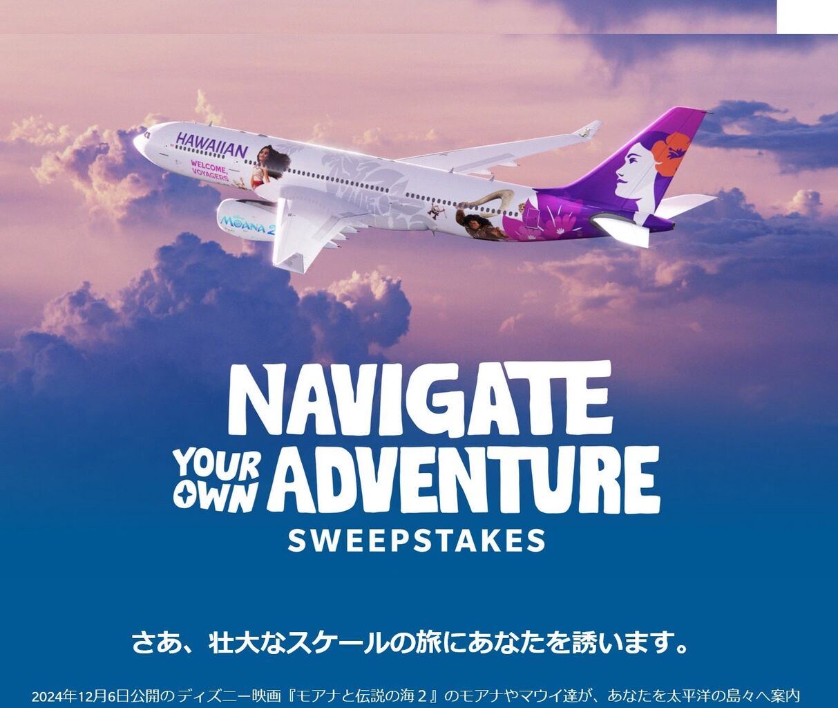 | ハワイアン航空、映画『モアナと伝説の海2』特別塗装機 ディズニーとコラボ …塗装機の運航は2025年3月までで、米国内線、ハワイ諸島路線、米領サモア、豪州、クック諸島、日本、ニュージーランド、韓国、タヒチの各路線に投入する。 … (出典:) |